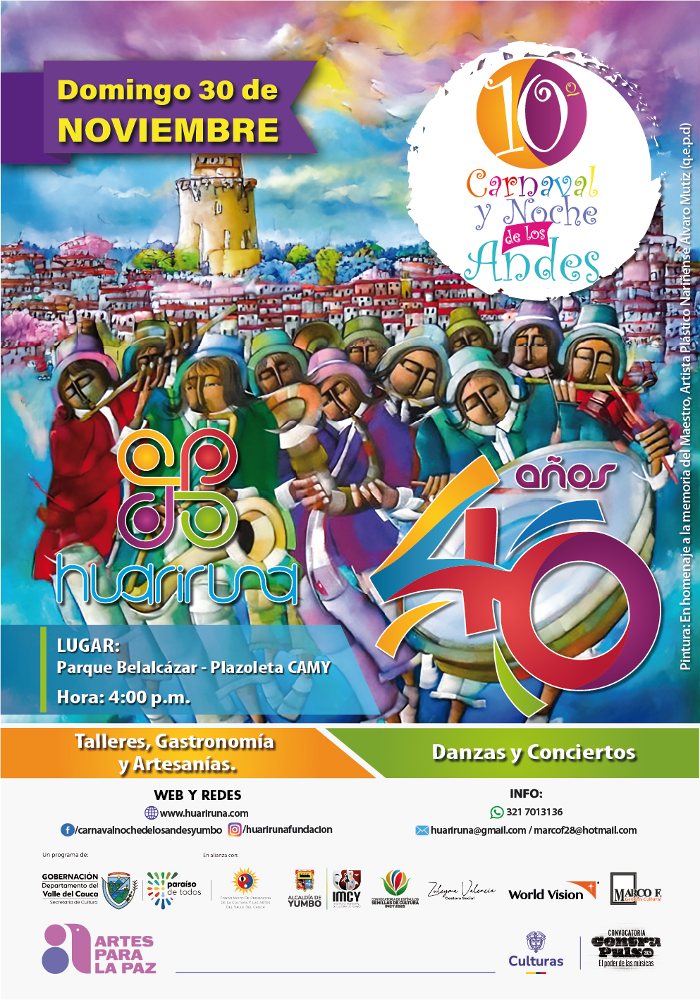 El Grupo Huari Runa de Yumbo, insignia de la música andina y latinoamericana, se complace en anunciar la celebración de sus 40 Años de Vida Artística, un hito que marca cuatro décadas de llevar con orgullo el nombre del municipio a escenarios de Colombia y el mundo.