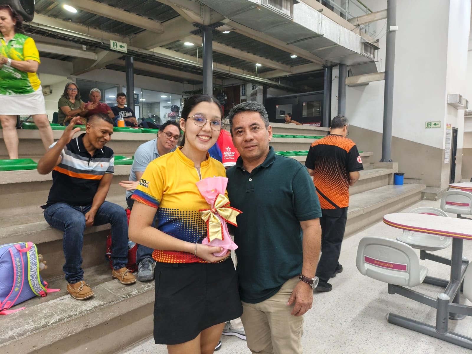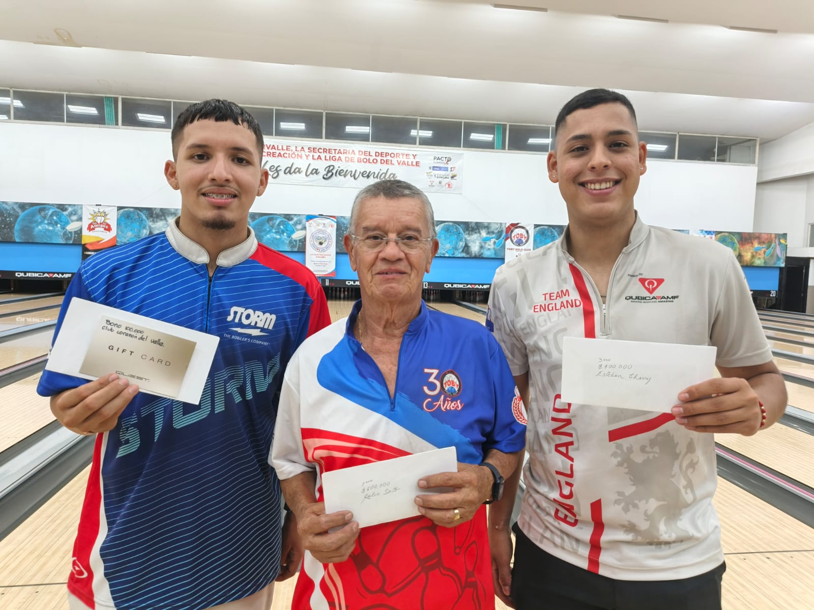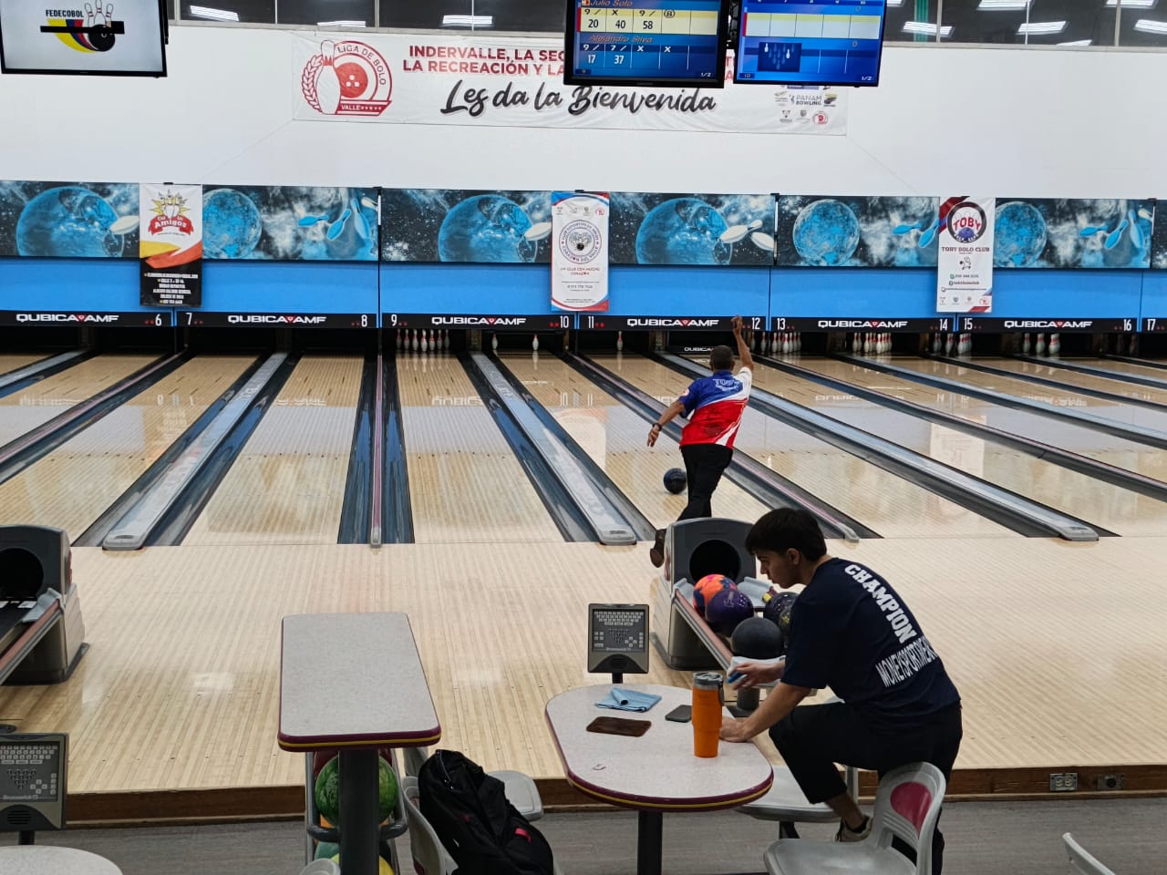 La fuerza de su familia en la gradería era mucha, aplausos se escuchaban cada vez que Julio Soto tumbaba los pines con la fuerza y experiencia que lo caracterizó durante toda la competencia que inició a las nueve de la mañana y que culminó a las nueve y media de la noche de este 13 de diciembre, logrando quedar campeón del evento, escoltado por José Alberto Escobar y Esteban Charry