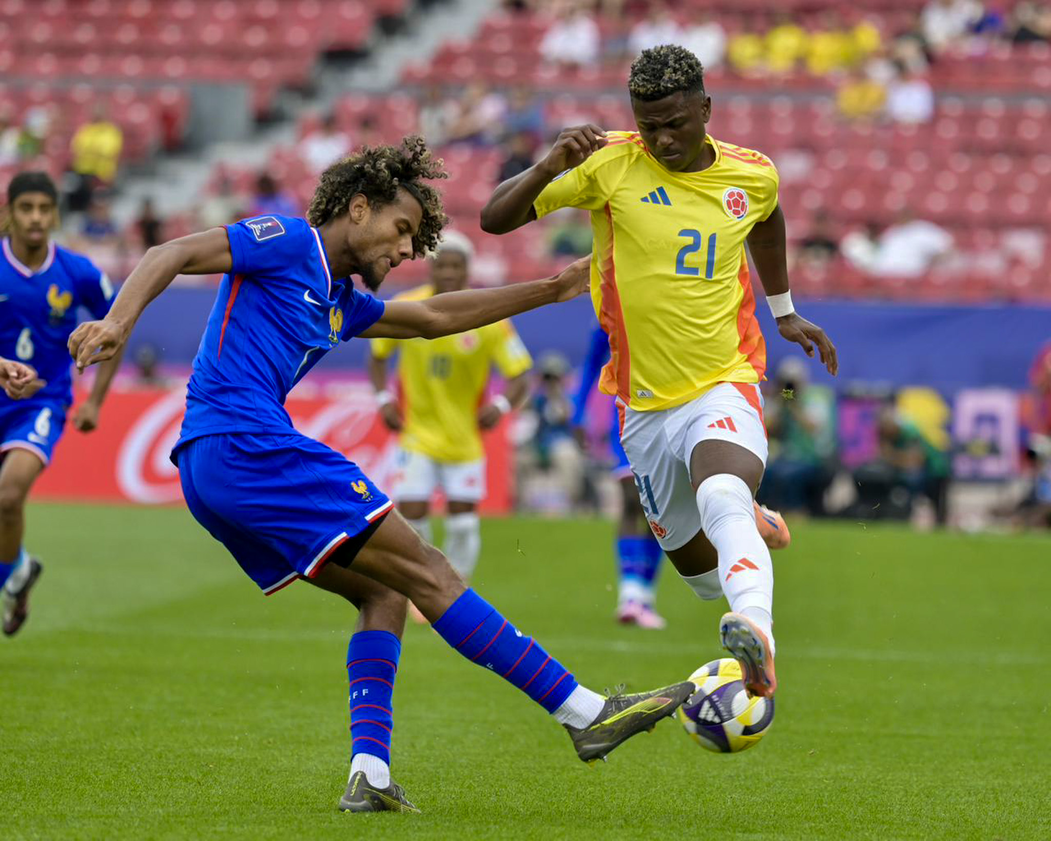 El partido inició con el combinado nacional proponiendo, presionando y buscando el partido en campo francés. Así, gracias a una presión alta, Colombia recuperó el balón y, a los dos minutos, Óscar Perea anotó el primer gol. Aunque «Les Bleus» intentaron igualar el marcador, Colombia cerró los espacio y mantuvo una sólida defensa.