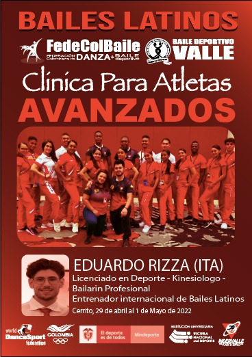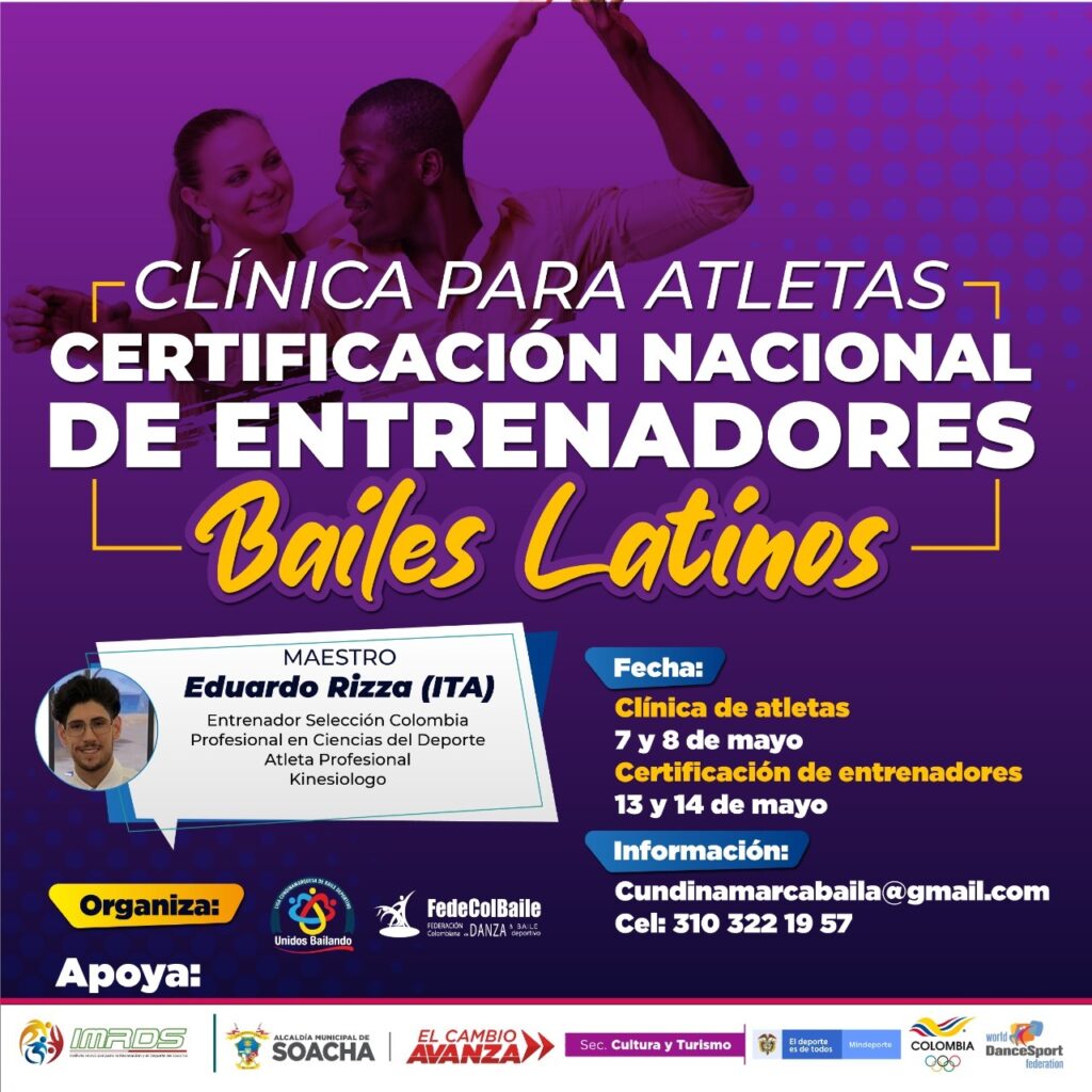 En Cundinamarca estará en la Clínica para atletas 7 y 8 de Mayo y certificación nacional de entrenadores de Bailes Latinos 13 y 14 de Mayo.
