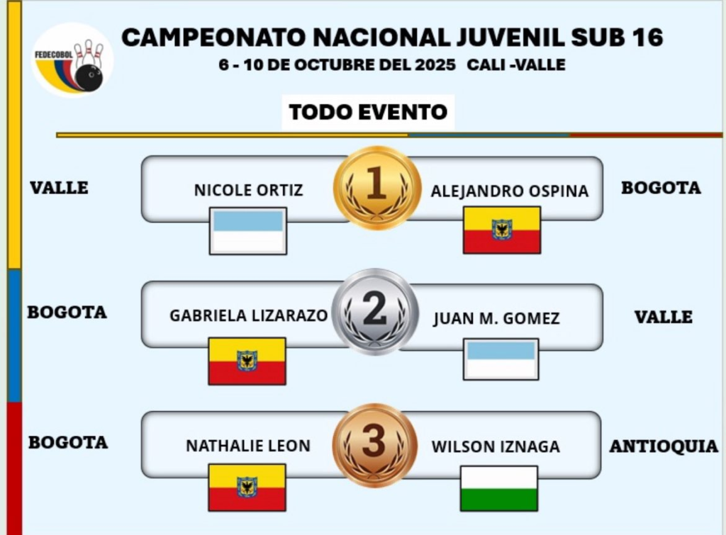 Con un total de 75 bolicheros entre hombres y mujeres, finalizó el Campeonato Nacional Juvenil en las categorías Sub 16 y Sub 18, con la participación de seis ligas del país, celebrado en la Bolera de la Unidad deportiva Alberto Galindo en la ciudad de Cali.