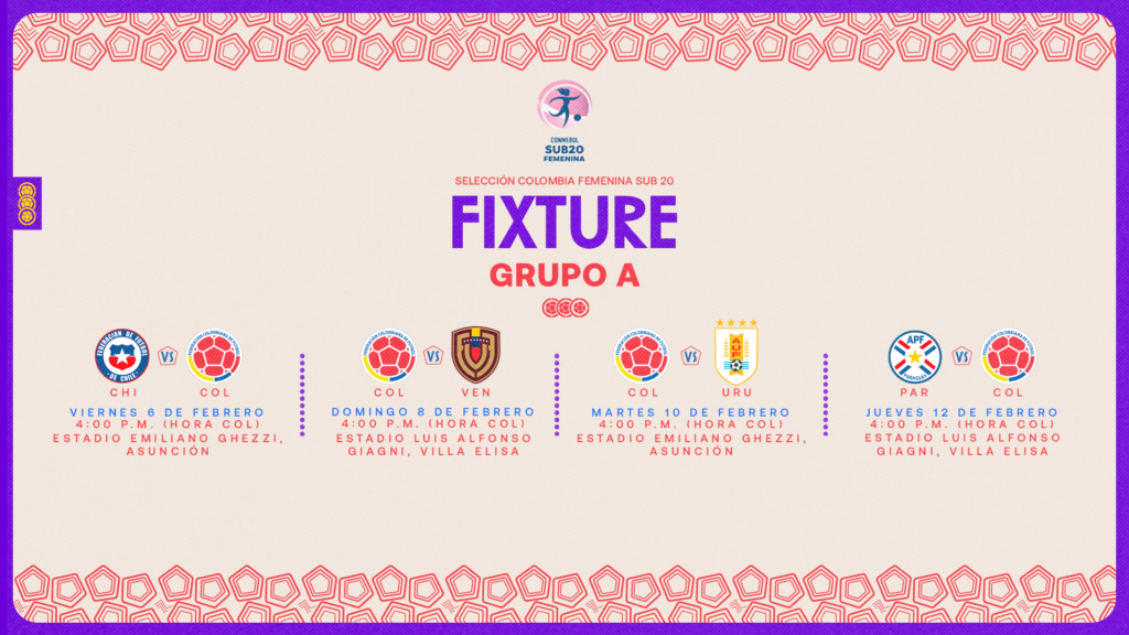 Se aproxima el CONMEBOL Sudamericano en el que participará la Selección Colombia Femenina Sub-20. El campeonato se desarrollará entre el 4 y el 28 de febrero. La ‘Sele’ integra el Grupo A junto a sus similares de Paraguay, Venezuela, Chile y Uruguay.