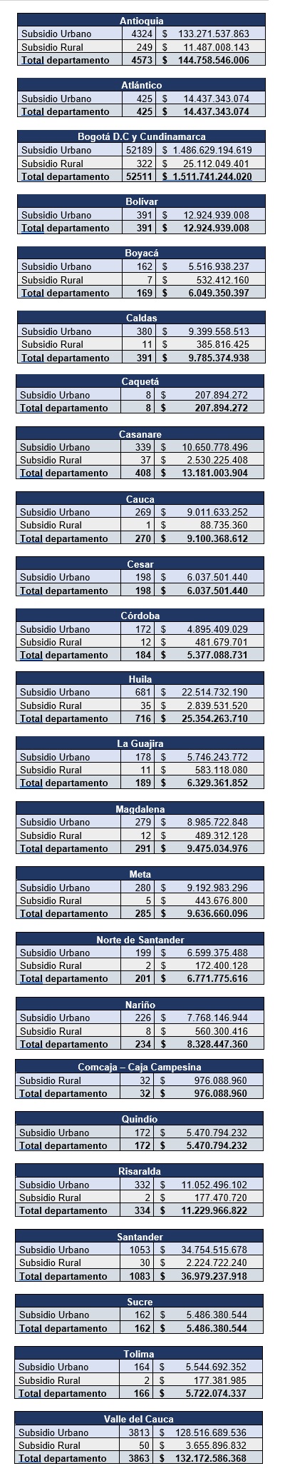 El departamento que más subsidios entregará en 2024 es Cundinamarca, región en donde están las cajas de compensación familiar más grandes del país y las que tienen más afiliados.